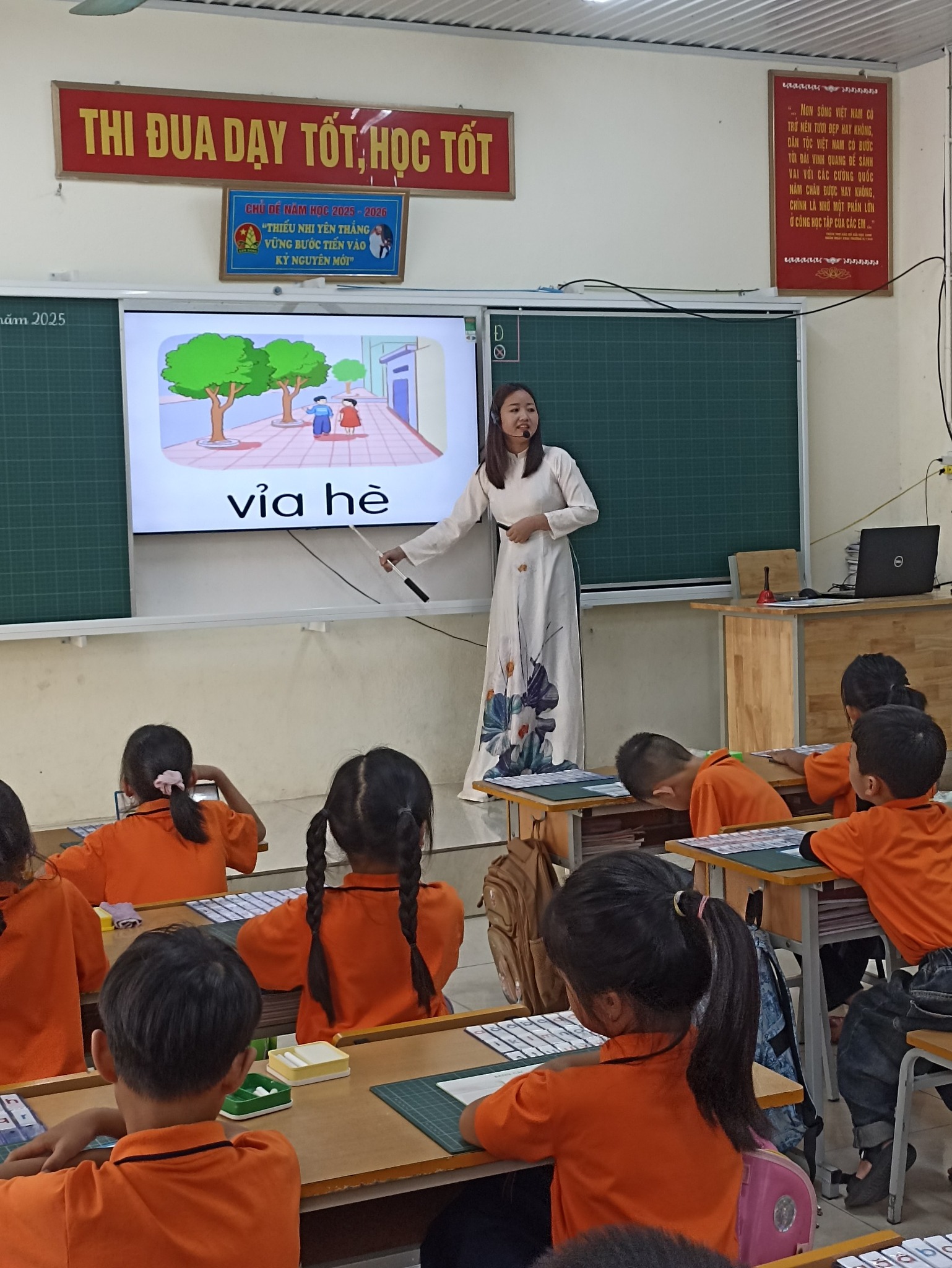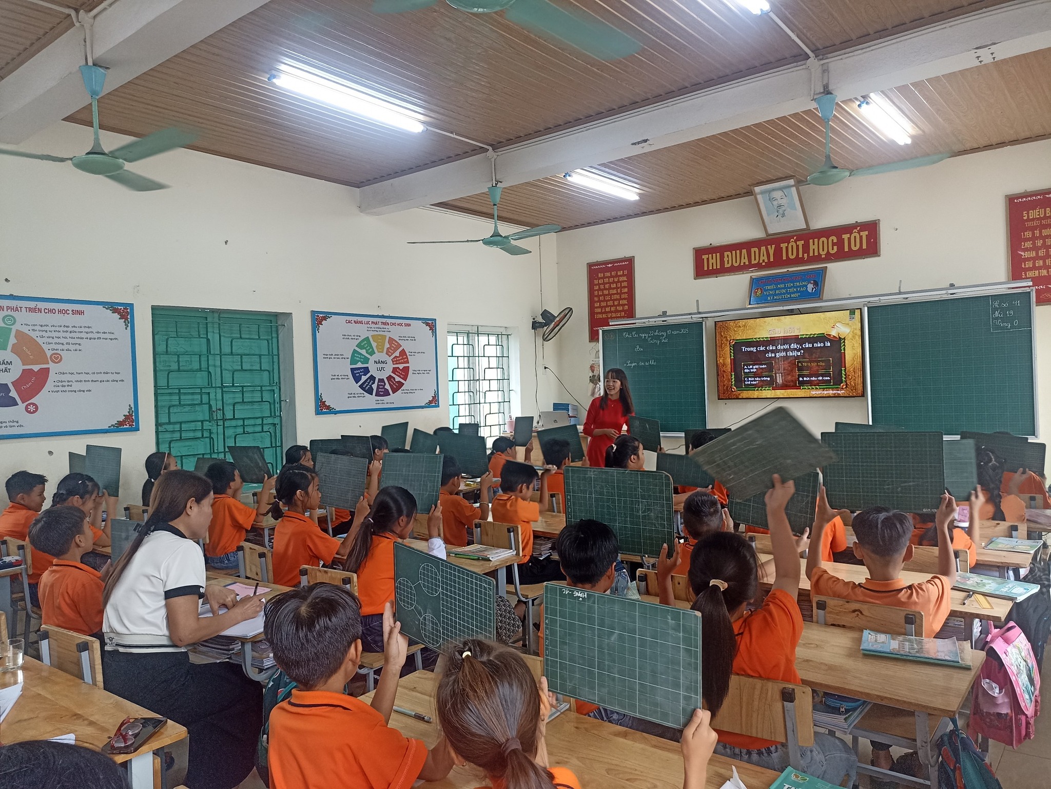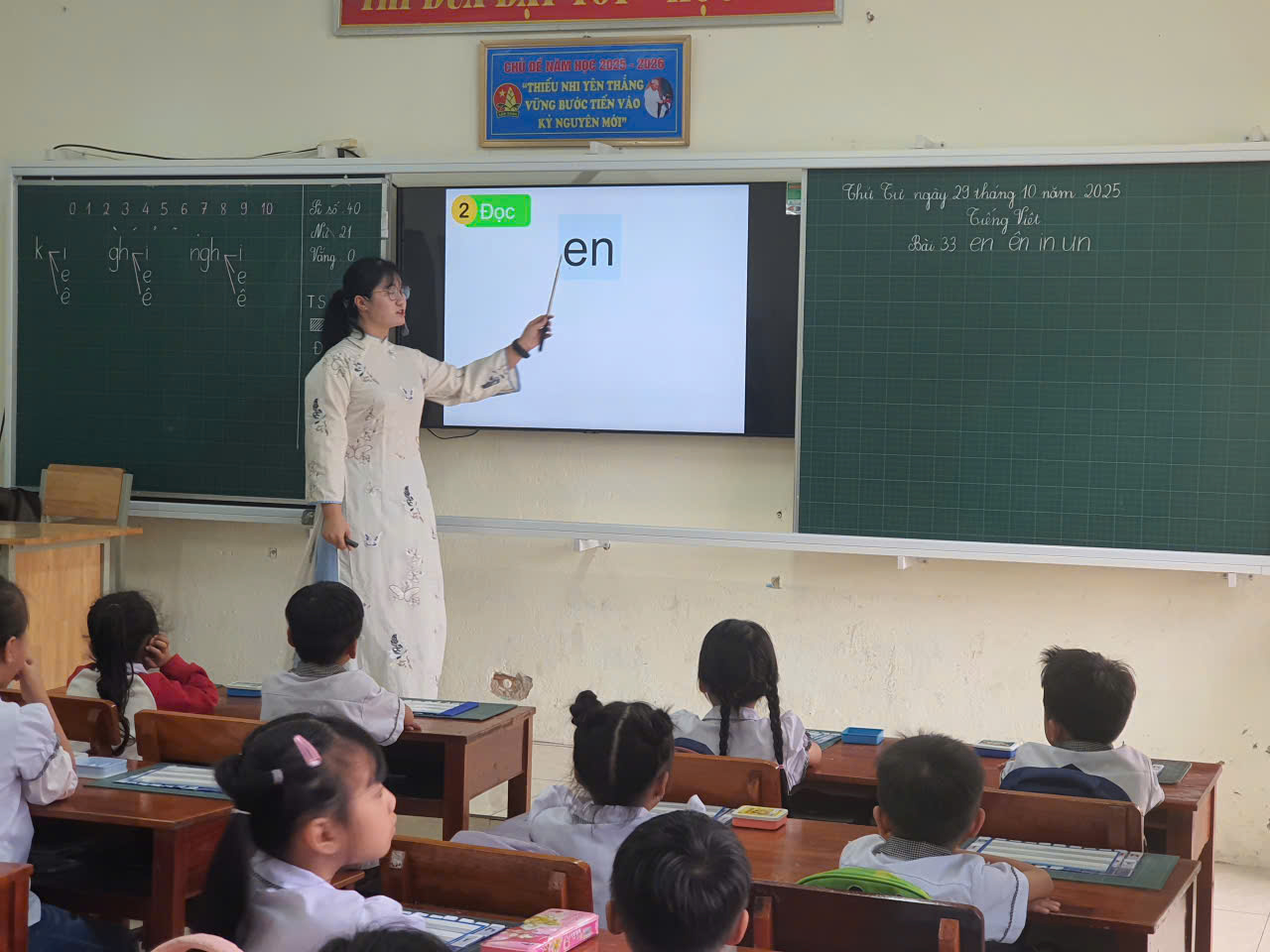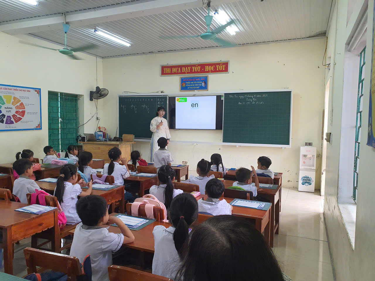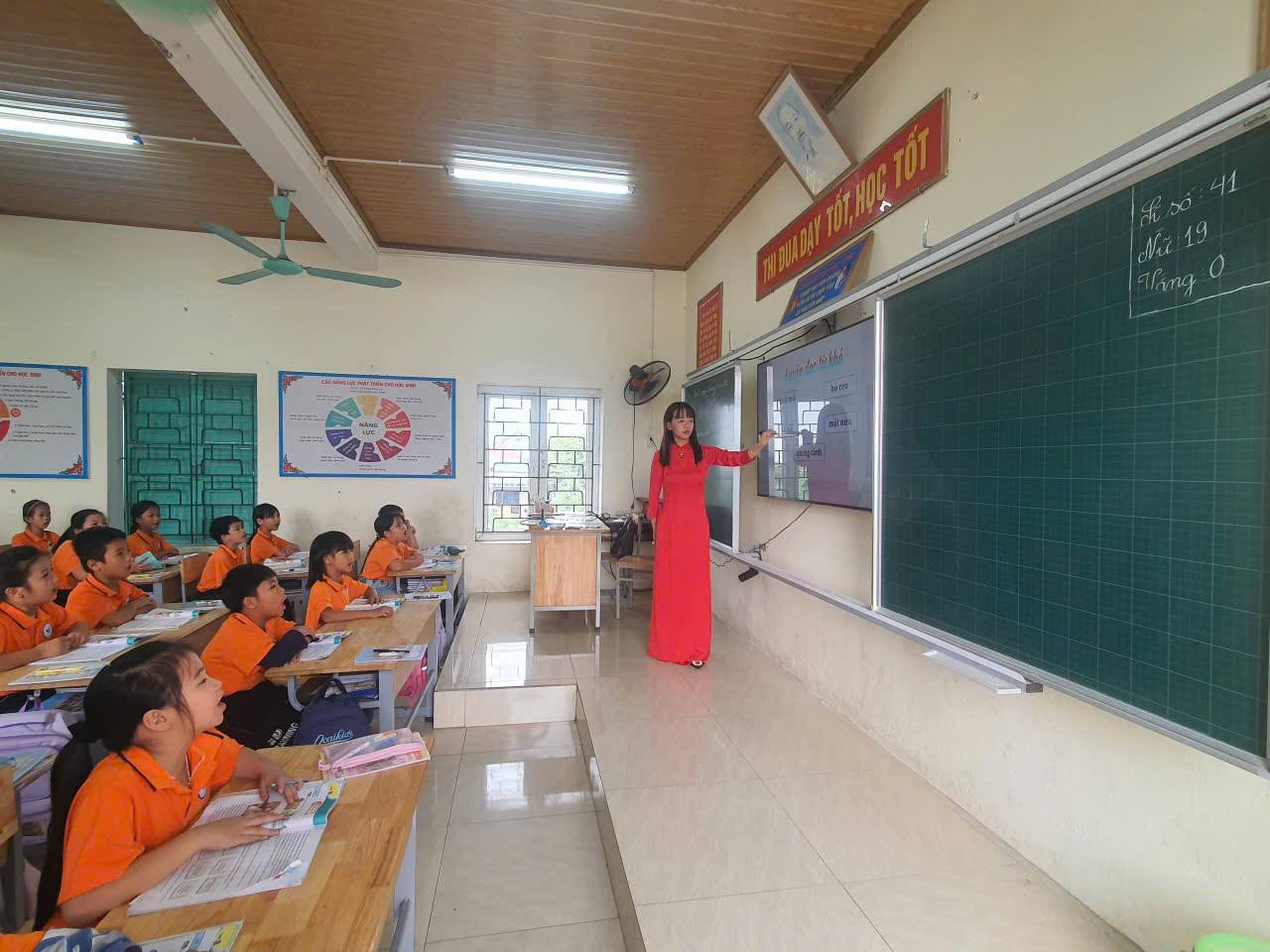 – Cô giáo Đinh Thị Thêu – với tiết Tiếng Việt lớp 1 (bài 27). Cô giáo đã khéo léo giúp các em nhỏ củng cố kỹ năng đọc – viết, thông qua những hoạt động học tập nhẹ nhàng, vui nhộn.