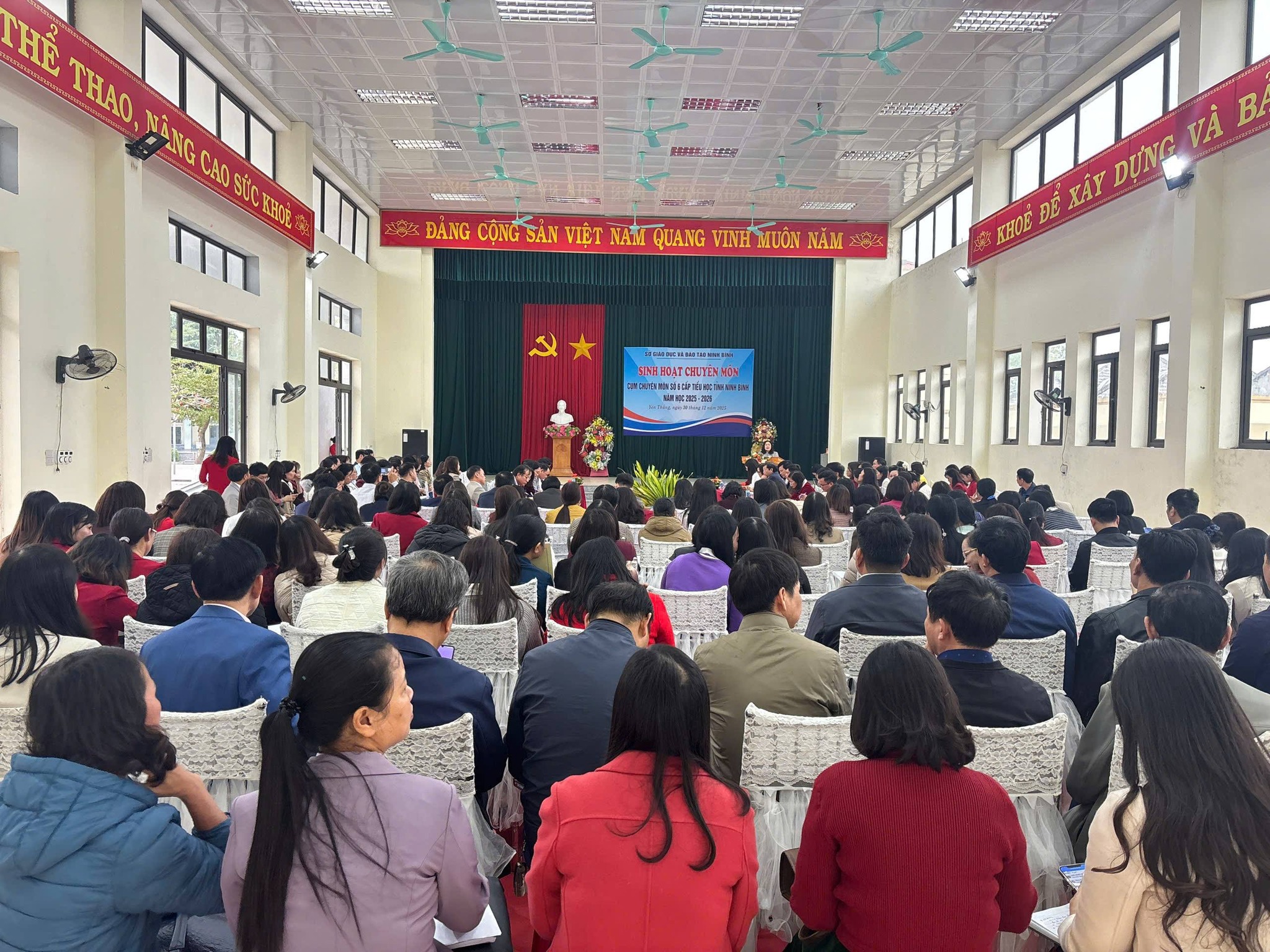 – Buổi sinh hoạt diễn ra với hình thức trực tiếp kết hợp với trực tuyến trong không khí nghiêm túc, cởi mở và giàu tính xây dựng, với sự tham dự của 170 đại biểu là đại diện lãnh đạo Sở Giáo dục và Đào tạo Ninh Bình, đội ngũ giáo viên cốt cán các cụm chuyên môn trong toàn tỉnh, đại diện lãnh đạo UBND phường và Phòng Văn hóa – Xã hội phường Yên Thắng, cùng đại biểu đến từ các nhà trường trong cụm.