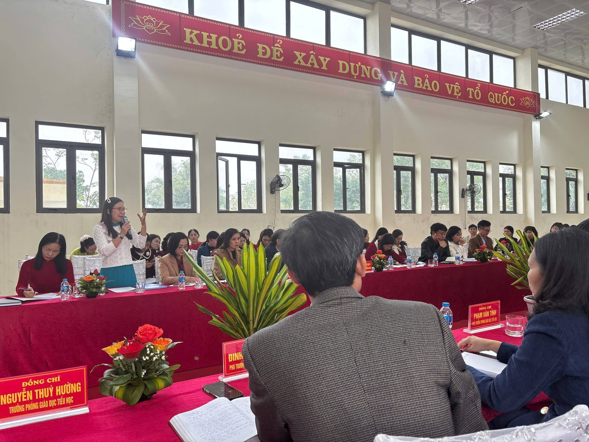 – Sau các tiết dạy là tham luận, các đại biểu và giáo viên đã cùng trao đổi, thảo luận, chia sẻ những điểm mạnh, cách làm hay cũng như đề xuất giải pháp nhằm nâng cao chất lượng tổ chức tiết học, tiết đọc thư viện trong nhà trường tiểu học.