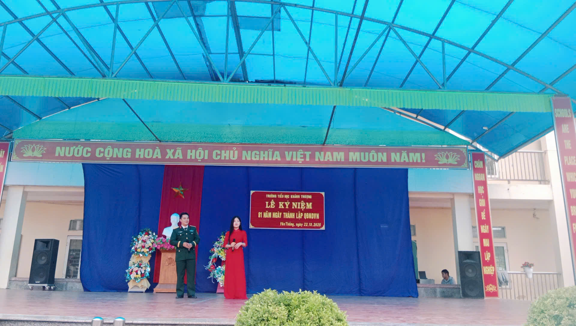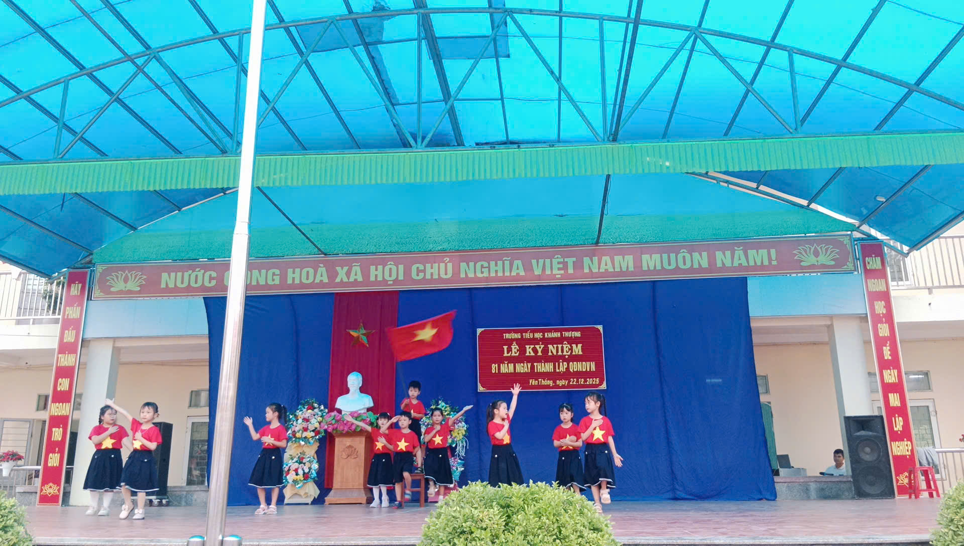 Hòa chung không khí thi đua sôi nổi chào mừng Ngày thành lập Quân đội Nhân dân Việt Nam. Hôm nay, ngày 22/12 trường Tiểu học Khánh Thượng đã long trọng tổ chức lễ kỷ niệm nhằm ôn lại truyền thống vẻ vang của Quân đội Nhân dân Việt Nam anh hùng.