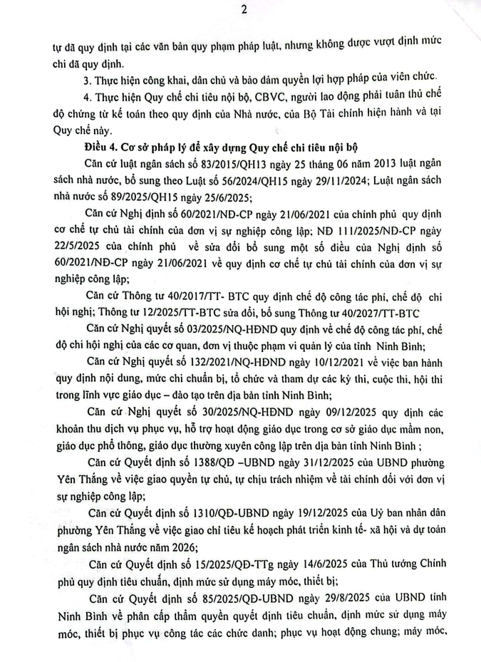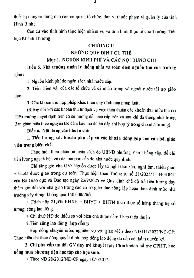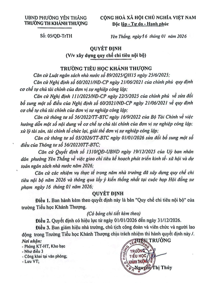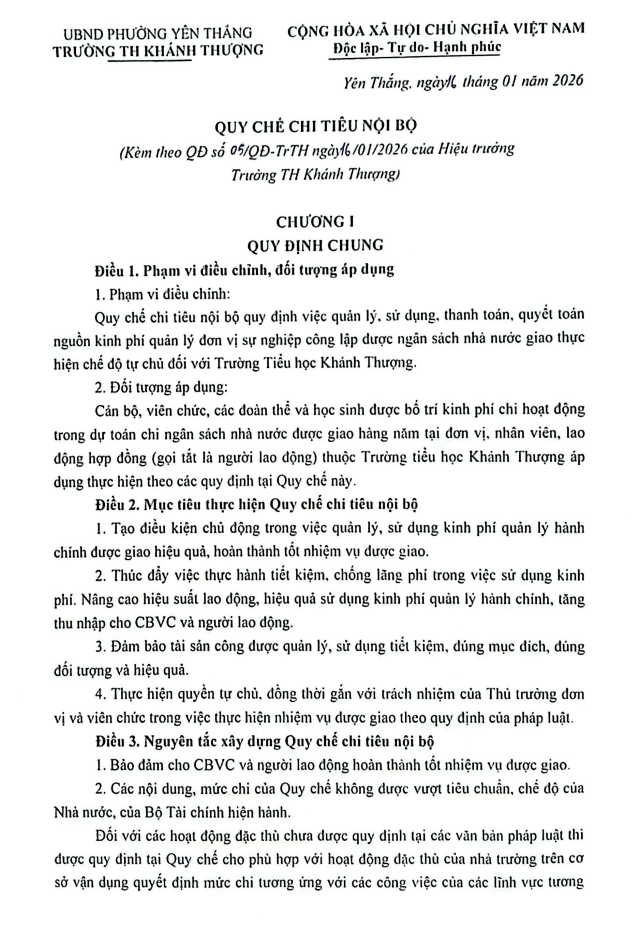 Trường Tiểu học Khánh Thượng Quyết định về việc xây dựng quy chế chi tiêu nội bộ